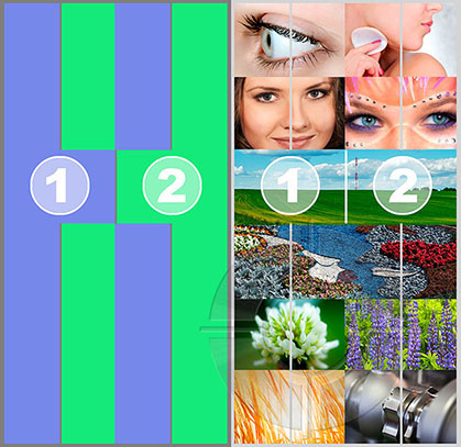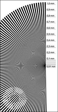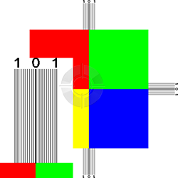 Наличие эффекта смешивания цветовых полей и его величину для каждой категории материалов, мы контролировали по данному тестовому изображению: