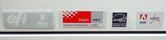 Это устройство успешно прошло сертификацию FOGRA для определённого материала и режима печати, о чём говорит соответствующая маркировка (FOGRA Cert #27477).